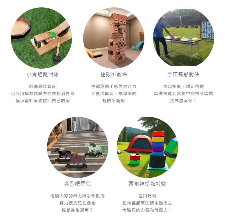 除了敲小青蛙外,現場還有像大型疊疊樂、丟飛盤、敲敲樂等有趣的小挑戰,讓孩子們邊玩邊動腦,增加了活動的豐富度與參與感。